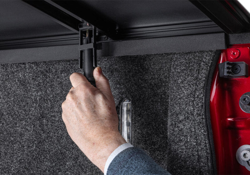The Trifecta E-Series is a soft folding truck bed cover topped with a durable vinyl material....