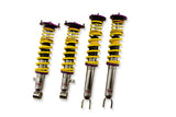Designed to maximize the performance on vehicles with DOT-R and other ultra high-performance tire setups. KW V3 Clubsport coilovers are the ideal choice for double-duty street cars, use at HPDE's(high performance drivers education), time attack or time trials, and club level racing. The Clubsport setup was specially designed on the Nordschleife and the continuous adjustable ride height allows for fine corner weight or making setup changes. The TVR-A and TVC-A valve technology -provide an unmatched level of separately adjustable damping for the rebound and compression enabling a customized set up appropriate for the vehicle's modifications such as weight, tire characteristics, and other various conditions. The KW V3 Clubsport INOX-LINE coilover kit is the ideal tool for performance-oriented drivers and experienced tuning enthusiasts who place a strong emphasis on the overall performance of their suspension. The KW V3 Clubsport features patented TVR-A and TVC-A technology -hat provides separately adjustable rebound and compression damping. The extensive Adjustment -angle of the independently configurable rebound and compression make it easy to directly influence the steering behavior, directional stability, grip and handling characteristics for confident and repeatable results at the limit of driving dynamics.