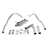 The MagnaFlow 1997-1999 Dodge Dakota Street Series Cat-Back Performance Exhaust System 15735 brings out the personality of your 3.9L, 5.2L, 5.9L 1997-1999 Dodge Dakota with our signature resonant, powerful engine tone and dyno-proven performance. Thanks to its fast-flowing, mandrel bent 3in. main piping and 1 Straight-Through mufflers ending in a Dual Split Rear exit with 3.5in. Polished Clamp-On Single Wall Angle Cut Rolled Edge tips, this Dodge Dakota exhaust kit has the performance chops to match its sporty sound and appearance. Upgrade your ride to the next level with an exhaust that has the pipes to put other Dodge Dakota's to shame. With this system your vehicle will be producing Aggressive exterior and Moderate interior sound levels while leaving other cars and trucks feeling envious at every stoplight. Exhaust kit 15735 features a cat-back layout that replaces your ride's stock exhaust components from near the catalytic converter on back. Extensive 3D scanning during development has resulted in a direct-fit design that you can easily install yourself. 15735 is produced using CNC precision robotic manufacturing techniques and is backed by MagnaFlow's 1-year limited finish warranty and limited lifetime construction warranty.