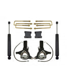 The Maxtrac Suspension 4.5-inch lift for the GM Full size platform is a cost-effective way to lift your 2WD wheel drive truck without breaking the budget. We do this by taking a factory height spindle and lowering the wheel hub position, which in turn raises the vehicle up while maintaining a factory-like ride and turning radius. By doing this, you eliminate the need to install expensive crossmembers that are labor intensive and require factory frame cuts. The spindles come with extended, DOT compliant, stainless steel braided brake lines. The rear lift comes with Maxtrac twin-tube shocks, lift blocks and U-bolts. The end result, you achieve a lifted truck with a leveled stance for a fraction of the cost of a standard 4WD kit.