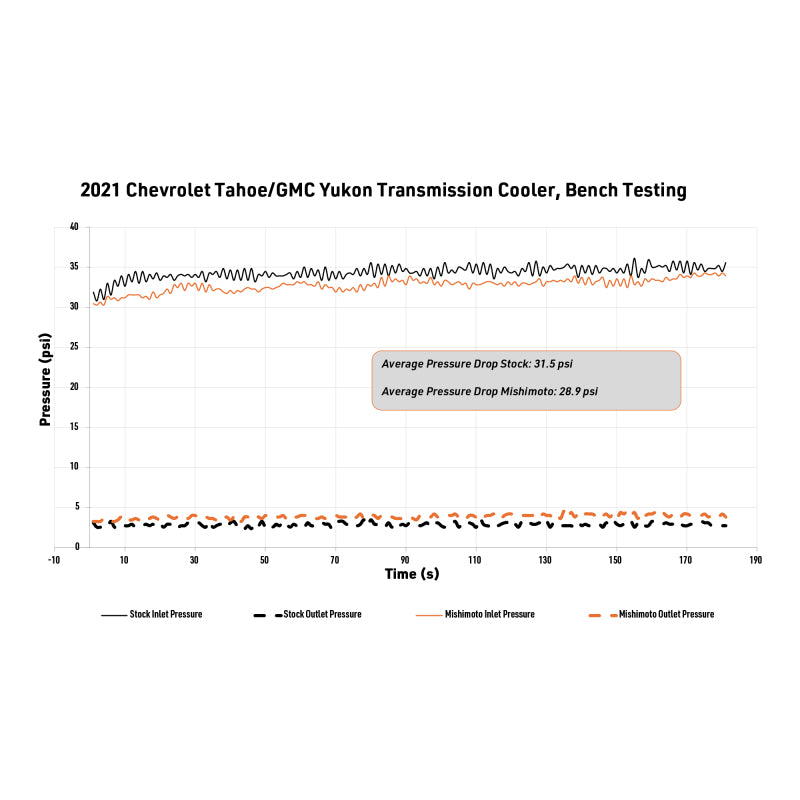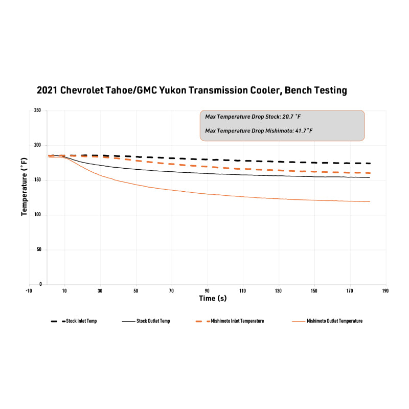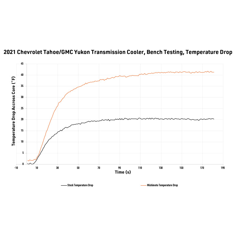 Heat is the biggest threat to your transmission’s longevity and performance. Whether your 2021+ Chevy Tahoe or GMC Yukon is hauling the family camper, towing weekend toys, or taking long summer road trips, keeping your transmission cool is essential for lasting performance and peace of mind.--Mishimoto’s direct-fit transmission cooler is engineered with a significantly larger tube and fin core that is 266% bigger than stock and maximizes cooling efficiency. This larger capacity reduces transmission temperatures and stress, helping extend the life of your transmission while maintaining reliable operation under heavy loads. Sturdy internal strutted tubes offer greater pressure resistance and protection against chassis flex.--Installation is straightforward with factory-compatible connections, and included bolts, plus a billet driver’s side bracket with slotted holes for precise adjustment. There’s plenty of clearance all around, and it can be installed without removing the grille, saving time and effort.--Designed, engineered, and tested in the USA, this genuine Mishimoto cooler features a robust powder coat to protect against corrosion and road debris. Backed by Mishimoto’s Lifetime Warranty, it’s a clean, reliable upgrade that eliminates the risks of reusing your stock cooler and keeps your transmission running cooler for longer.