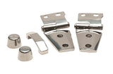 Complete hood kit includes set of hood hinges, windshield tie down kit, hood vent, footman loop and hood catches (except 7465).